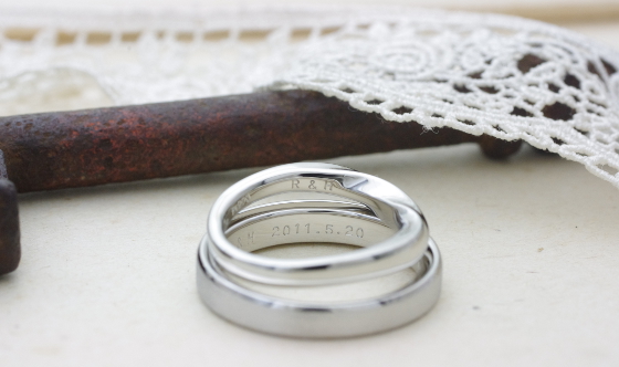 角を丸く落としていくと全く違うデザインになるリングをお選び頂き、とても柔らかいイメージに仕上がりました。