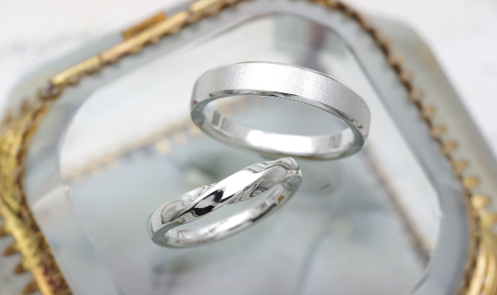 メンズは人気のストレートでシャープなデザイン。つや消し加工されたマットな面がデザインをより引きたてます。