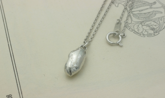 2005年に立爪タイプの婚約指輪をリフォームして頂いたk様。その際に空枠になった土台のプラチナリングを身に着けていたいということで溶かし、溶かしたままのデザインでペンダントヘッドを制作。