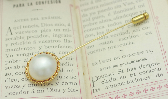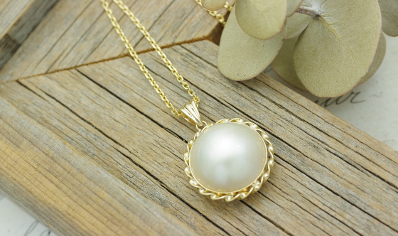 ピンブローチだと使わないので、ペンダントに変えられますか?とご来店いただきました。とってもキレイなマベパールと、ねじってデザインされている縁に合わせて、バチカンを一から制作しました。チェーンの長さも、お客様ご指定の長さでご用意し、長く使っていただけるペンダントとなりました。