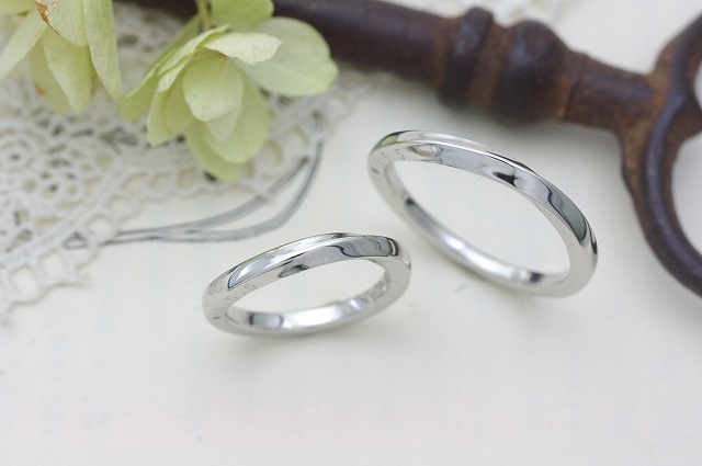 お2人はそこからアイデアが生まれ、1/4回転ひねりの加えられたリングをご希望されました。型から制作をしてカッコイイリングが完成致しました。
