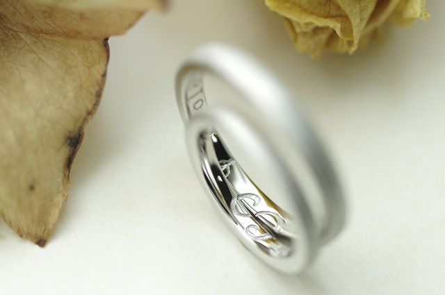 表面はシンプルなストレートリングに輝きを落ち着かせるシルキーラインのマット仕上げを施しました。