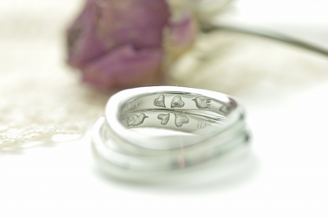 写真には上手く写りきりませんが、内側デザインのクローバーと鳥そして桜は側面にも繋がっていくように彫りを施しています。