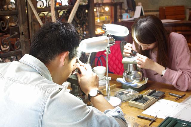 指輪作りに携わって頂くことで、より大切な指輪になってほしい…という思いから、お客様の手で刻印を打刻していただく刻印体験をはじめました。一緒に刻印したね。っていつか素敵な思い出話ができますね。
