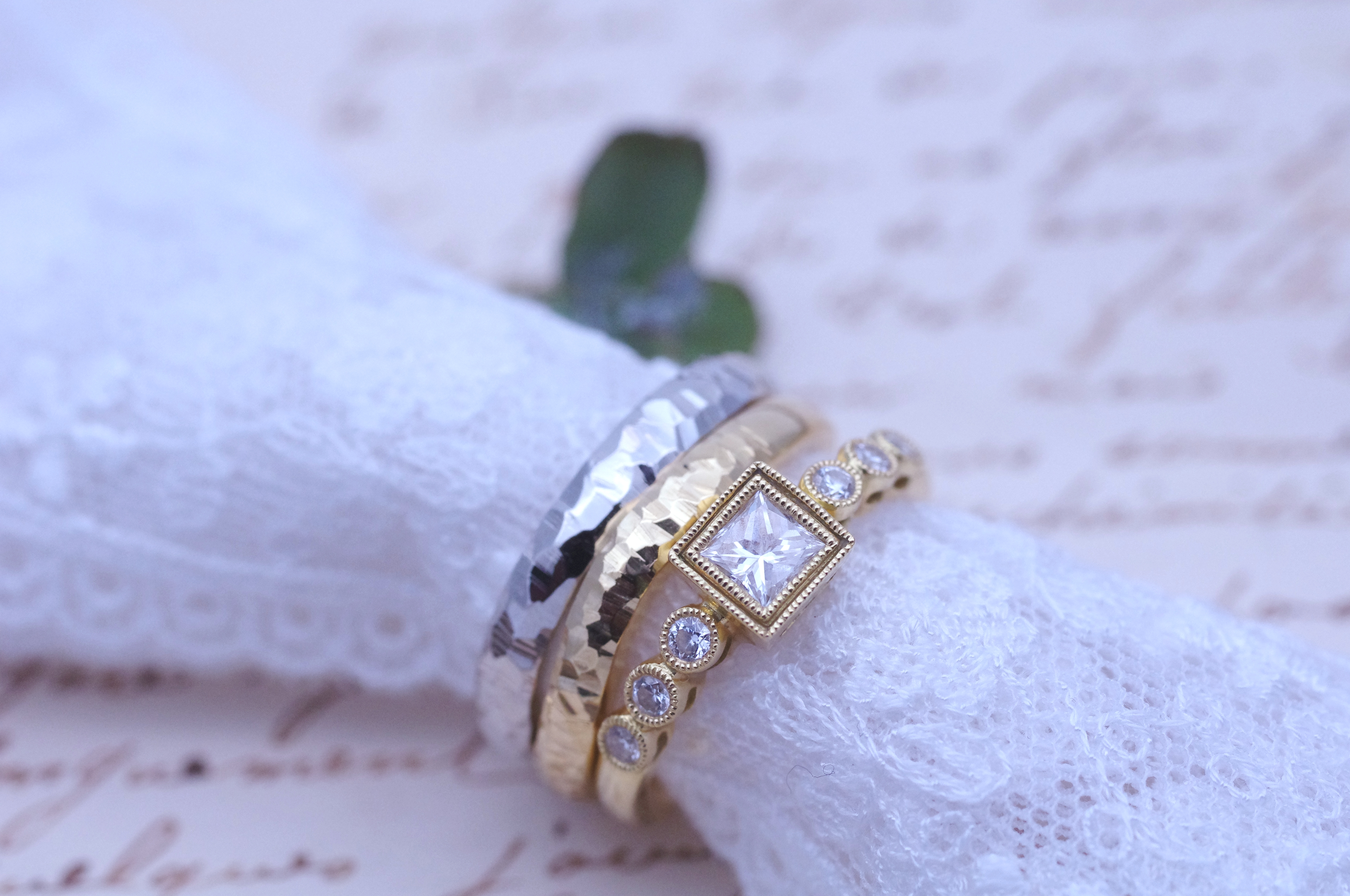 「プロポーズ、婚約、結婚」それぞれの指輪を素敵な仕上がりにして頂いて、とても満足です。