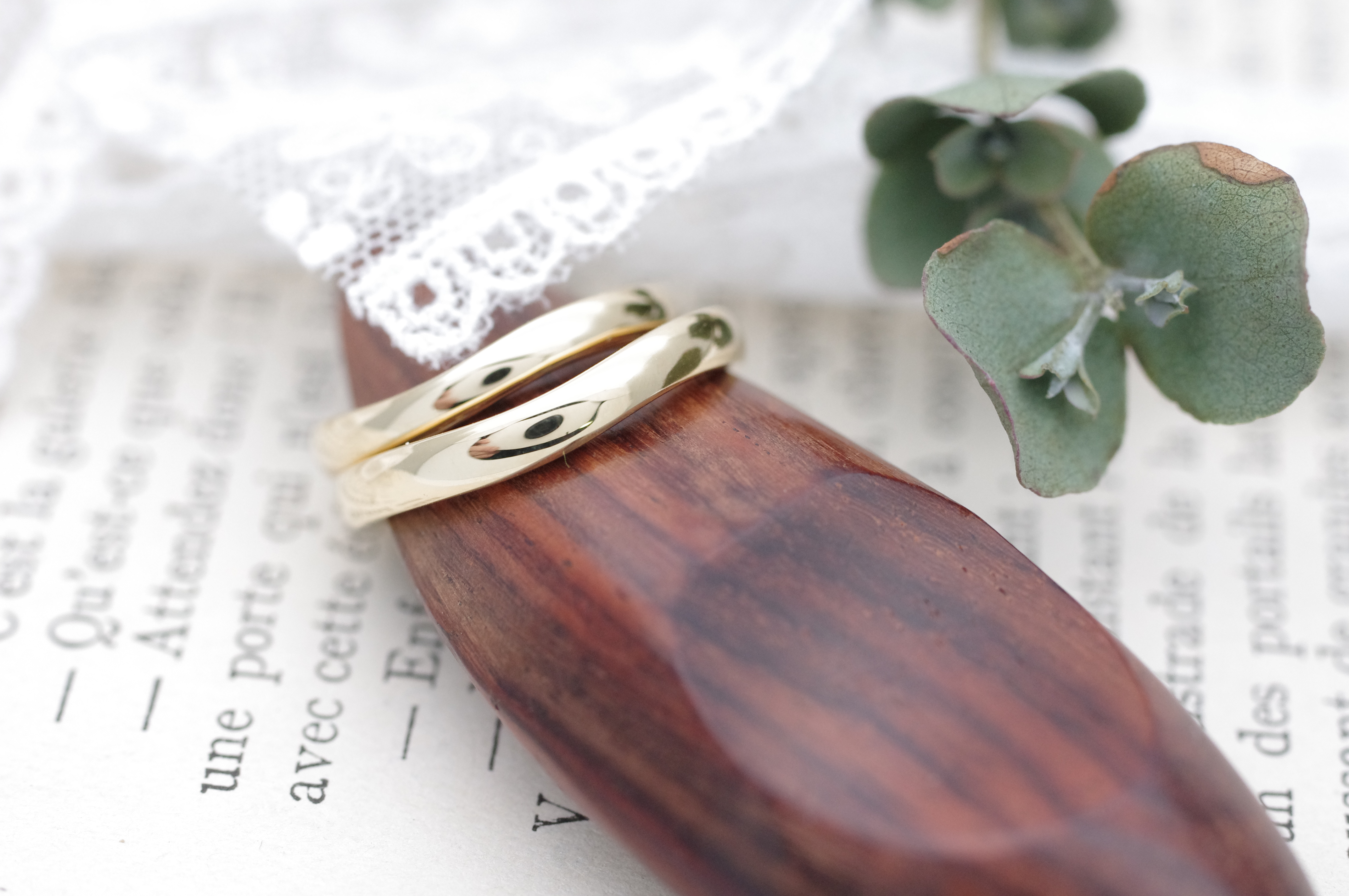 エンゲージリングのお色味と合わせた、K18YGのやさしい印象の指輪に仕上がりました。