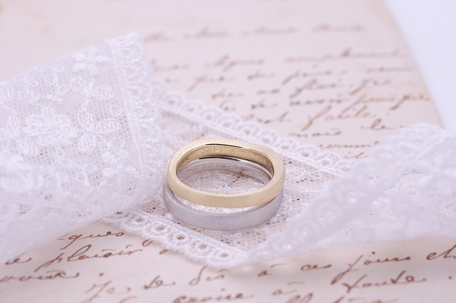 同じゆるやかなカーブで、素材をそれぞれイエローゴールドとプラチナでお作りしたデザインです。