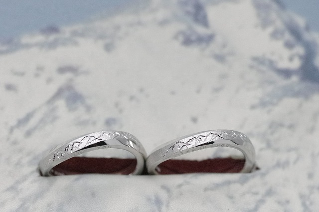 お二人の大切な思い出の山をモチーフに制作させていただくにあたり、山の稜線を出来る限り忠実に再現できるよう心掛けました。